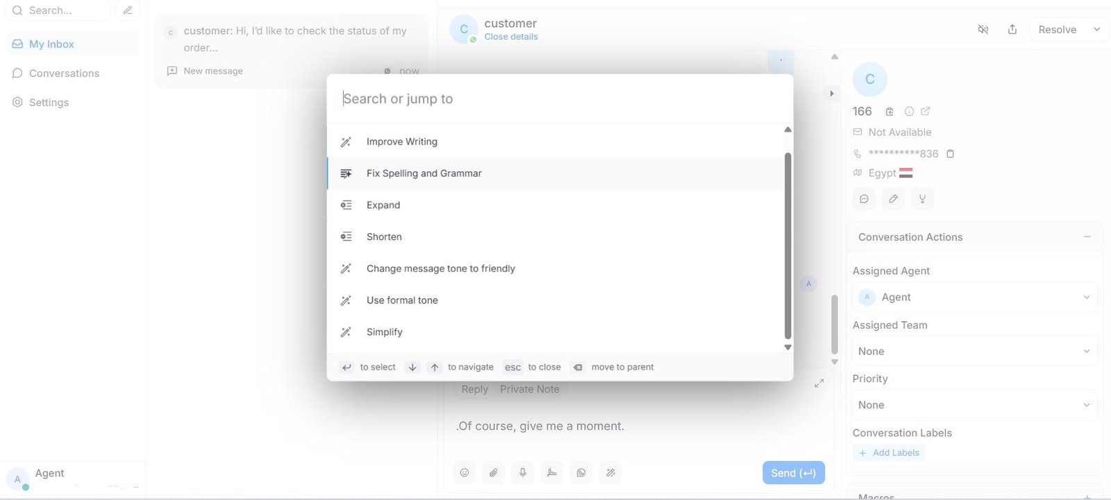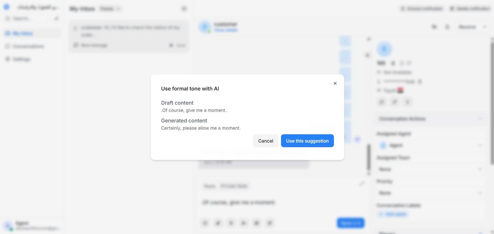 Full AI Support: Includes smart AI agents that can interact with customers, along with AI tools that assist human agents with reply suggestions and language correction.